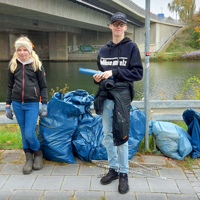Wie auch schon im Jahr zuvor zeigte sich, dass die Kanalufer relativ gut gepflegt und nicht so stark vermüllt waren wie in den ersten Jahren der Aktion. So hielt sich auch die insgesamt angefallene Menge mit sieben blauen Säcken, einem Eimer und Metallteilen in Grenzen. Thomas hat dankbarerweise alles mit seinem Transporter eingesammelt und entsorgt.
