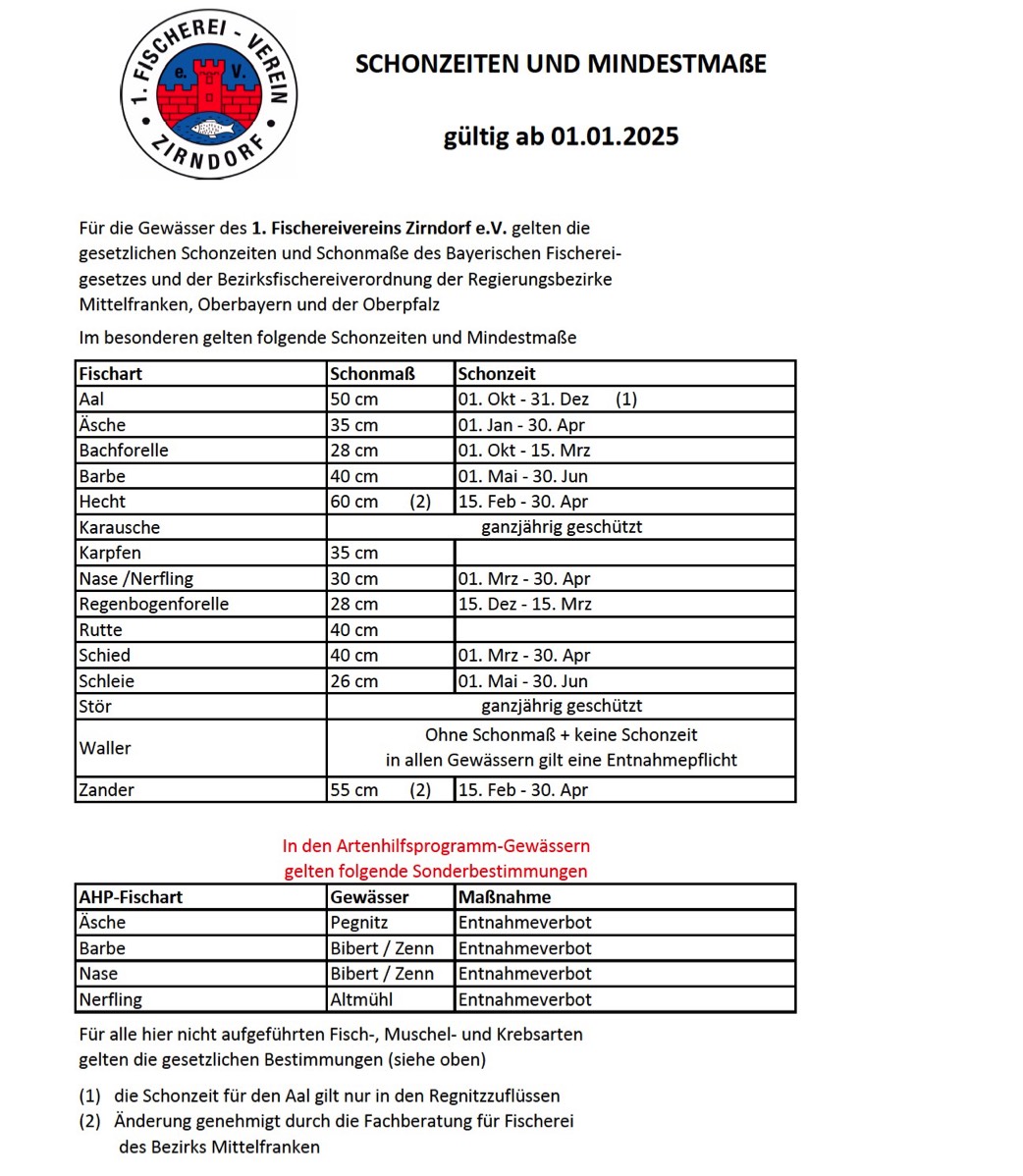 Wenn die staatliche Schonzeit der Bachforelle nach dem 28. Februar aufgehoben ist, wird diese Flussstrecke gerne von den Zirndorfer Anglern besucht. Denn dann kann jeder, auch wenn er die hohe Kunst des Fliegenfischens nicht beherrscht, mit künstlichen Ködern wie beispielsweise mit Blinkern oder mit Naturködern wie Tauwurm und Mais prächtige Forellen fangen. Vor allem wenn Anfang März nach den oft langen und kalten Wintertagen die ersten warmen Strahlen der Vorfrühlingssonne den Boden und das Wasser erwärmen, zieht es die Angler hinaus an die mit Forellen besetzten Gewässer Rednitz, Pegnitz, Schwarzach und Schwarze Laaber. Oft erlebt man dann, dass auch mancher hungrige Hecht die für Forellen gedachte Mahlzeit nicht verschmäht.