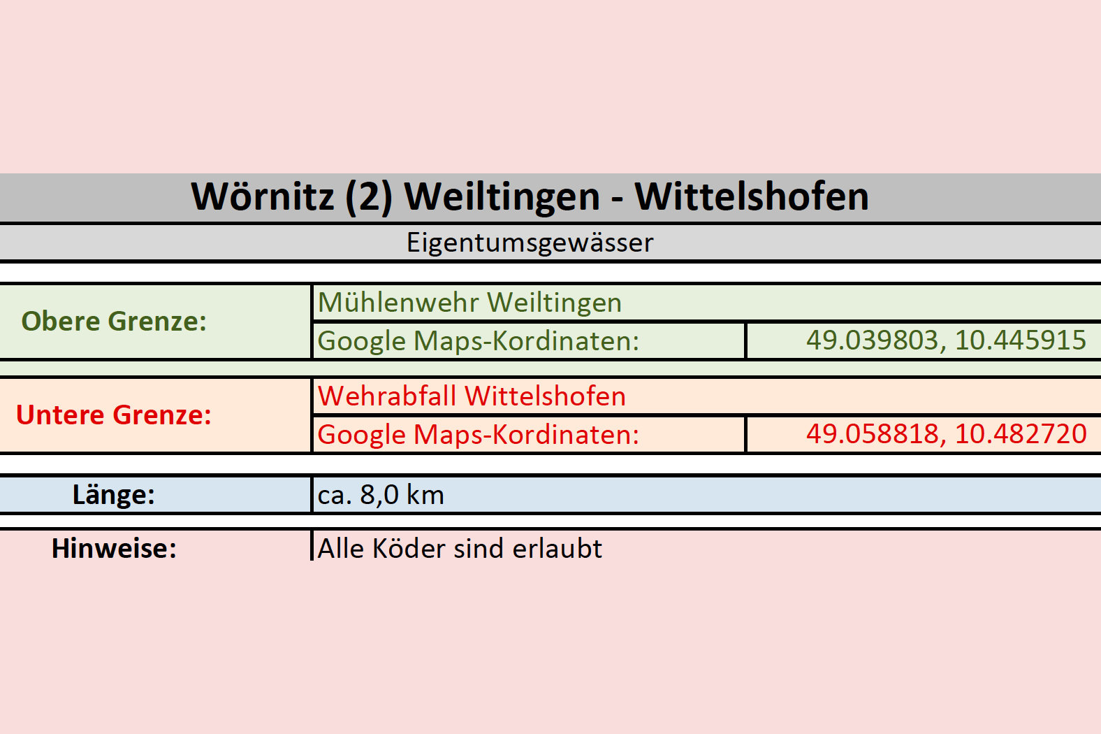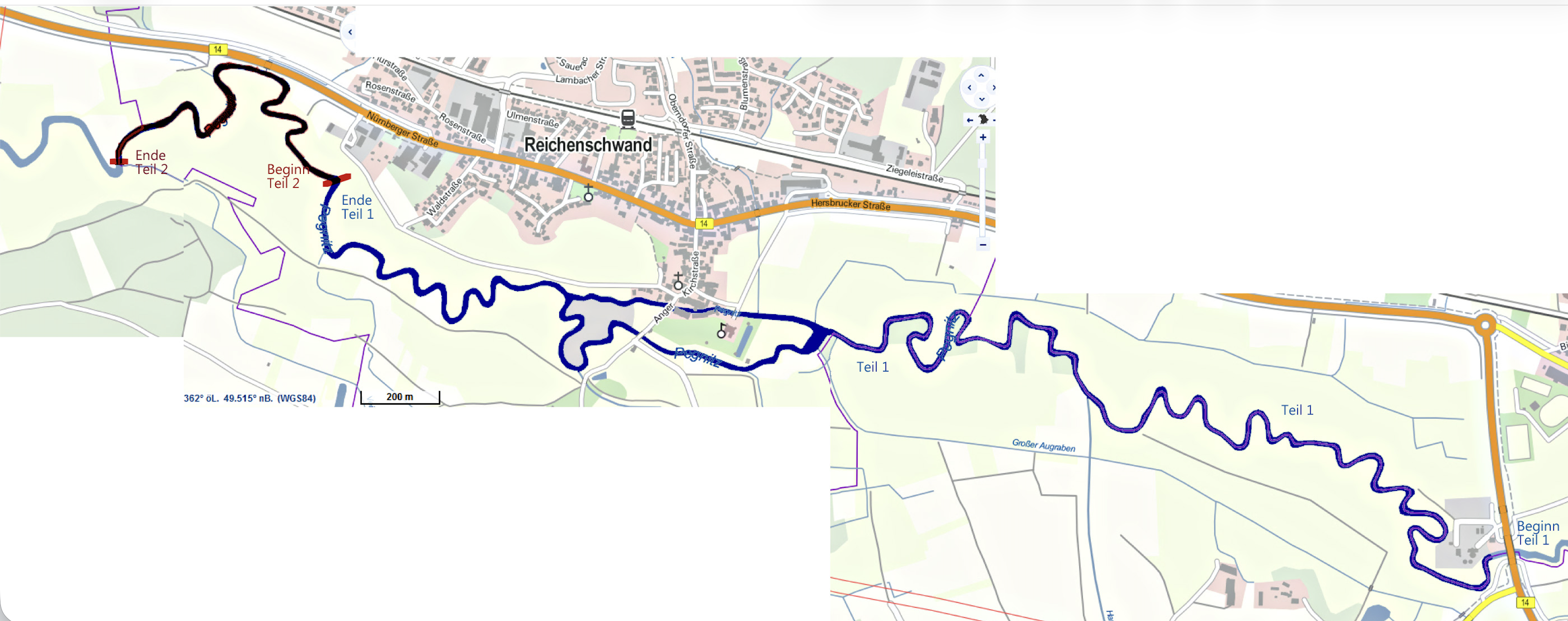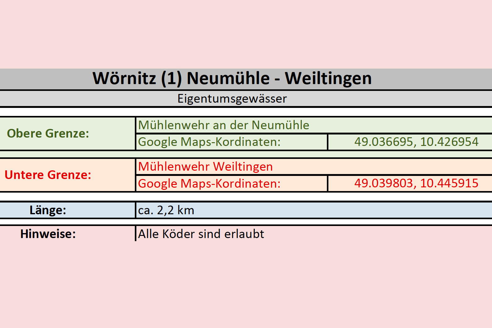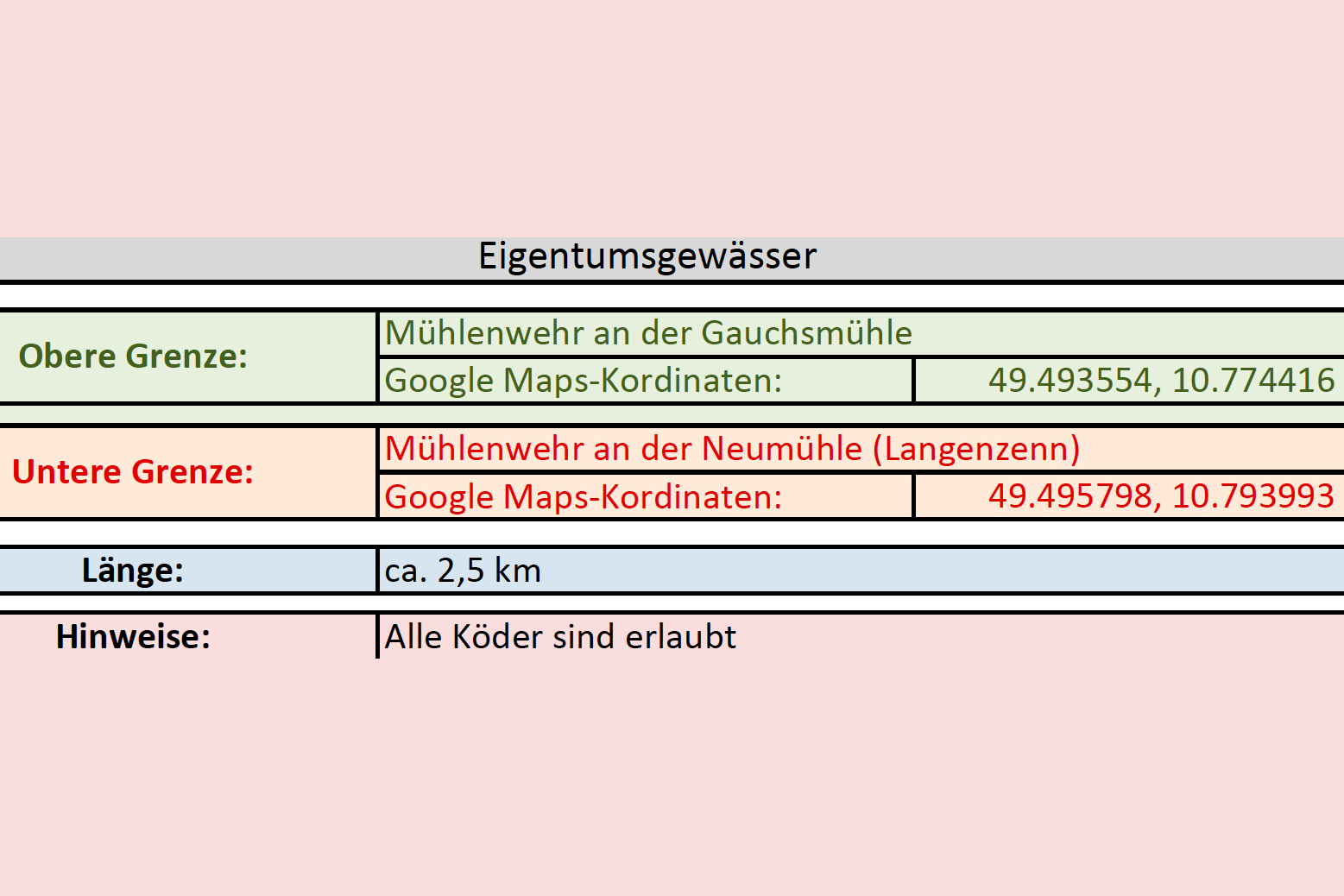 Flussaufwärts wurden 1,5 km bis zur Leichendorfer Mühle und flussabwärts ca. 1,0 km bis zum Zaun an der Kläranlage Zirndorf später hinzu gepachtet.