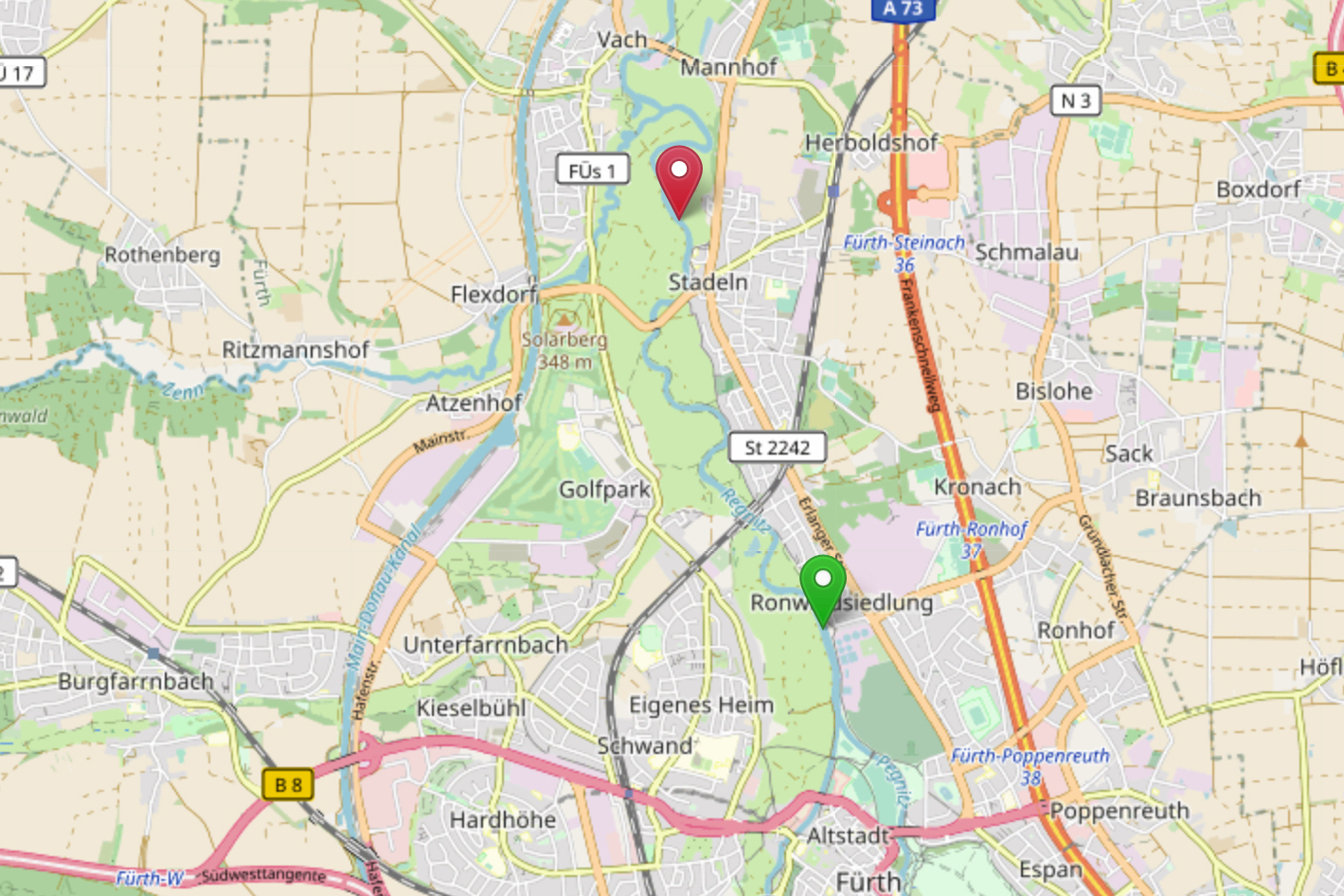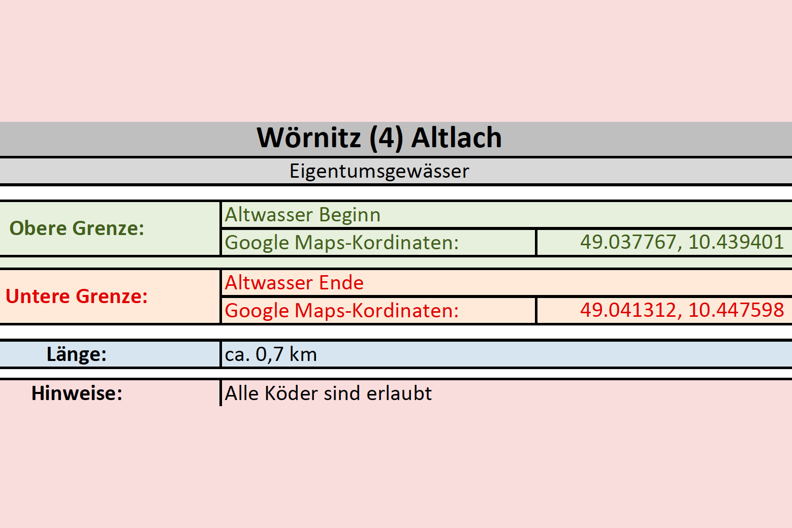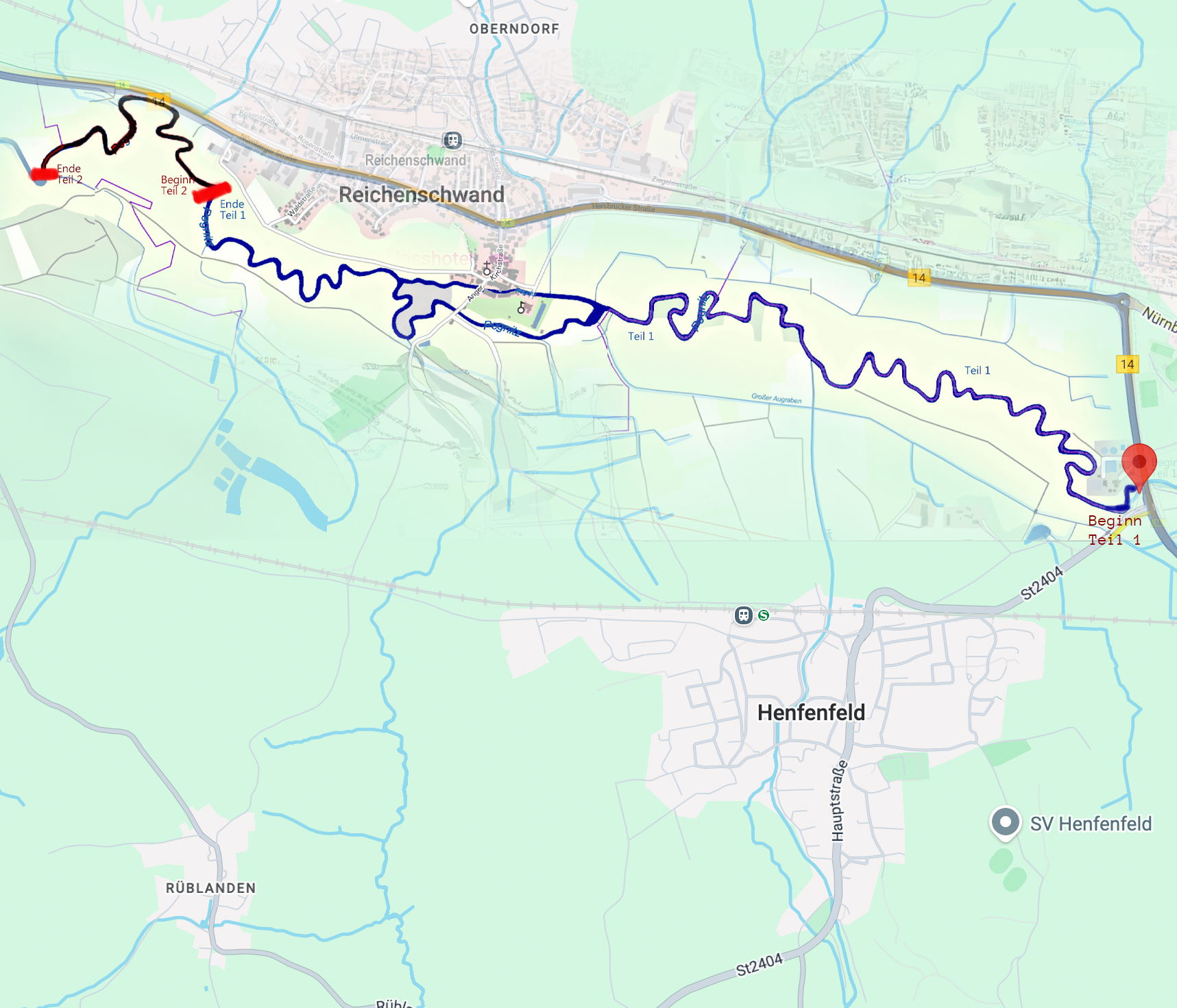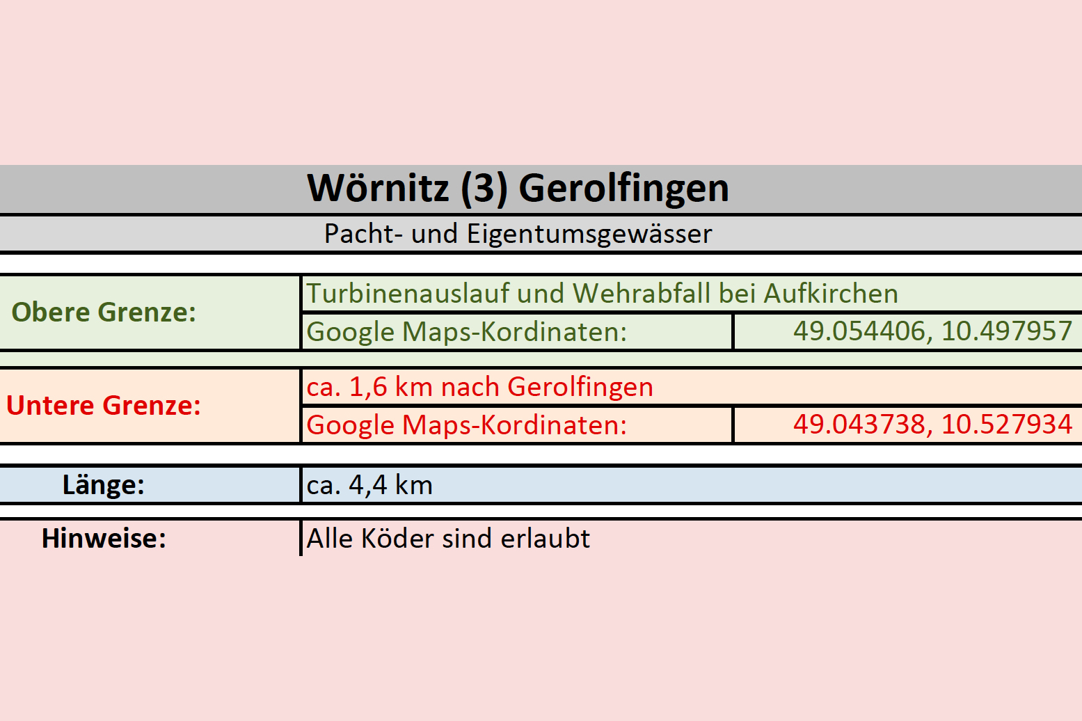 Flussaufwärts wurden 1,5 km bis zur Leichendorfer Mühle und flussabwärts ca. 1,0 km bis zum Zaun an der Kläranlage Zirndorf später hinzu gepachtet.